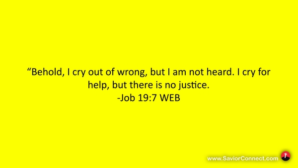 “Behold, I cry out of wrong, but I am not heard. I cry for help, but there is no justice. -Job 19:7 WEB