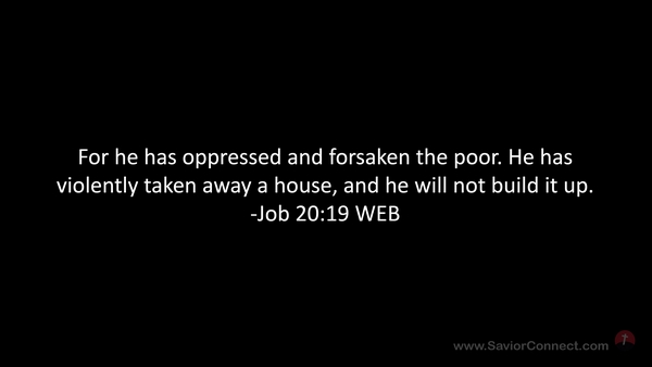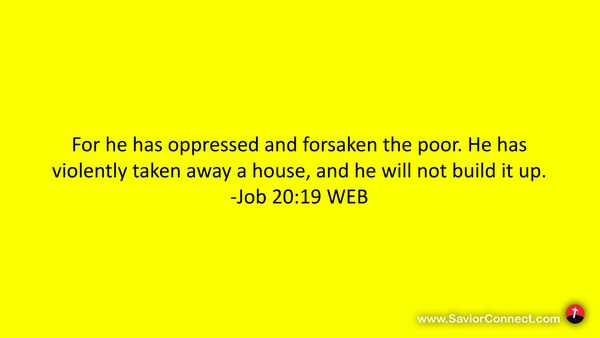 For he has oppressed and forsaken the poor. He has violently taken away a house, and he will not build it up. -Job 20:19 WEB