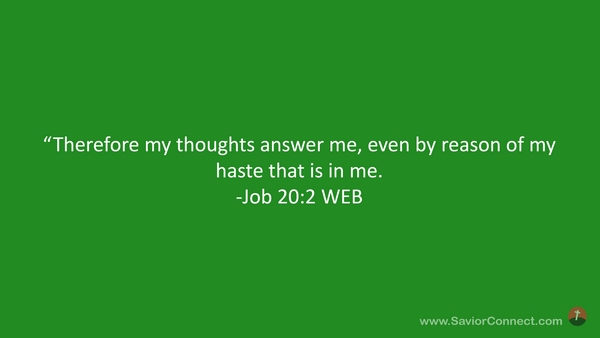 “Therefore my thoughts answer me, even by reason of my haste that is in me. -Job 20:2 WEB