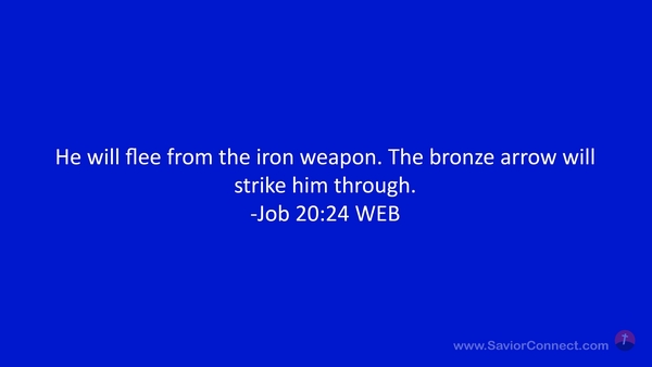 He will flee from the iron weapon. The bronze arrow will strike him through. -Job 20:24 WEB