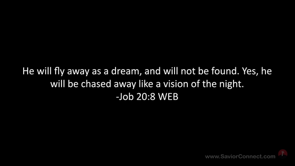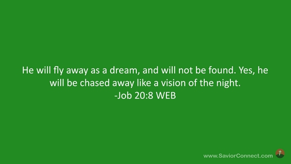 He will fly away as a dream, and will not be found. Yes, he will be chased away like a vision of the night. -Job 20:8 WEB