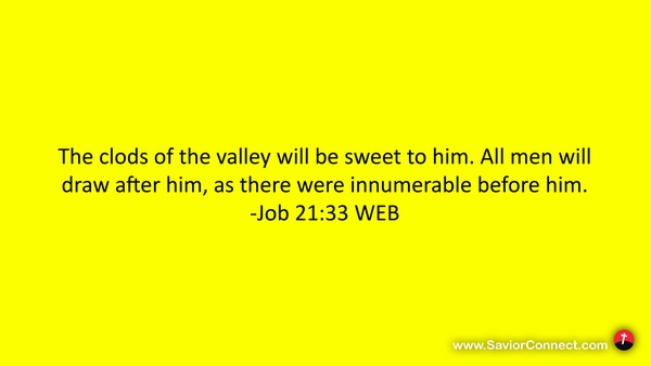 The clods of the valley will be sweet to him. All men will draw after him, as there were innumerable before him. -Job 21:33 WEB