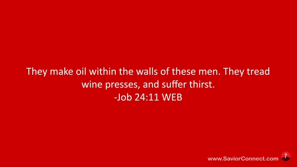 They make oil within the walls of these men. They tread wine presses, and suffer thirst. -Job 24:11 WEB