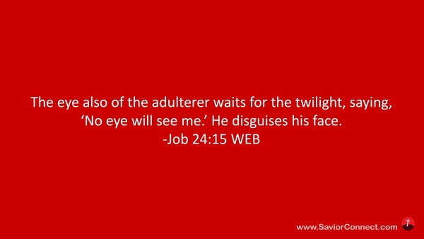 The eye also of the adulterer waits for the twilight, saying, 'No eye will see me.’ He disguises his face. -Job 24:15 WEB
