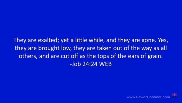 They are exalted; yet a little while, and they are gone. Yes, they are brought low, they are taken out of the way as all others, and are cut off as the tops of the ears of grain. -Job 24:24 WEB