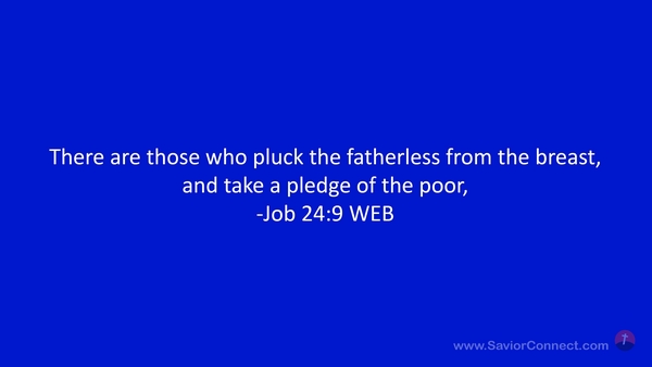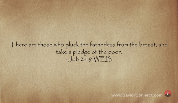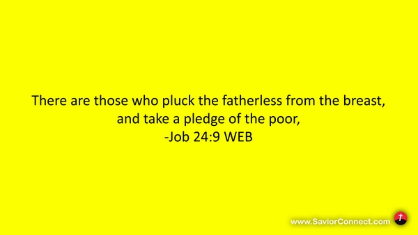 There are those who pluck the fatherless from the breast, and take a pledge of the poor, -Job 24:9 WEB