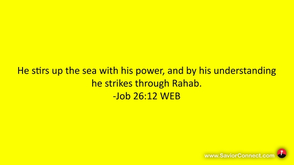 He stirs up the sea with his power, and by his understanding he strikes through Rahab. -Job 26:12 WEB