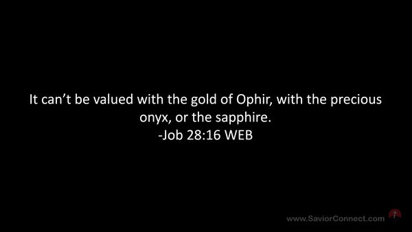 It can’t be valued with the gold of Ophir, with the precious onyx, or the sapphire. -Job 28:16 WEB