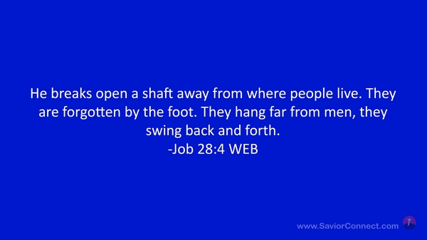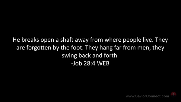 He breaks open a shaft away from where people live. They are forgotten by the foot. They hang far from men, they swing back and forth. -Job 28:4 WEB