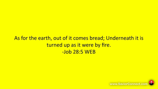As for the earth, out of it comes bread; Underneath it is turned up as it were by fire. -Job 28:5 WEB