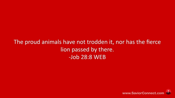 The proud animals have not trodden it, nor has the fierce lion passed by there. -Job 28:8 WEB