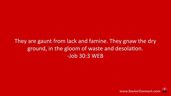They are gaunt from lack and famine. They gnaw the dry ground, in the gloom of waste and desolation. -Job 30:3 WEB