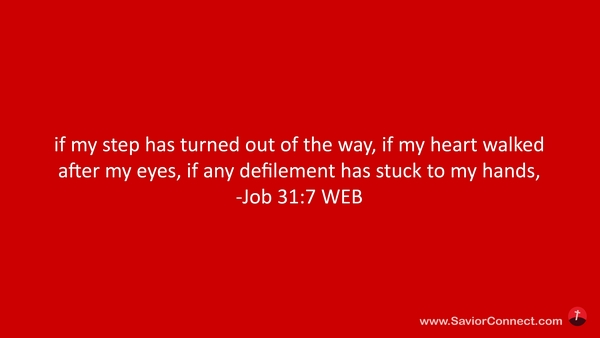 if my step has turned out of the way, if my heart walked after my eyes, if any defilement has stuck to my hands, -Job 31:7 WEB