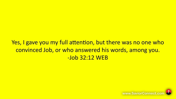 Yes, I gave you my full attention, but there was no one who convinced Job, or who answered his words, among you. -Job 32:12 WEB
