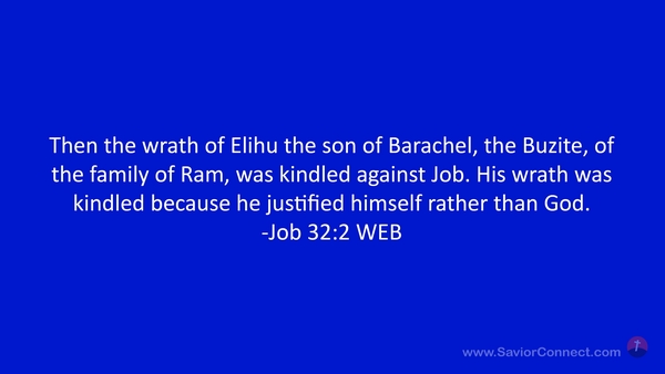 Then the wrath of Elihu the son of Barachel, the Buzite, of the family of Ram, was kindled against Job. His wrath was kindled because he justified himself rather than God. -Job 32:2 WEB