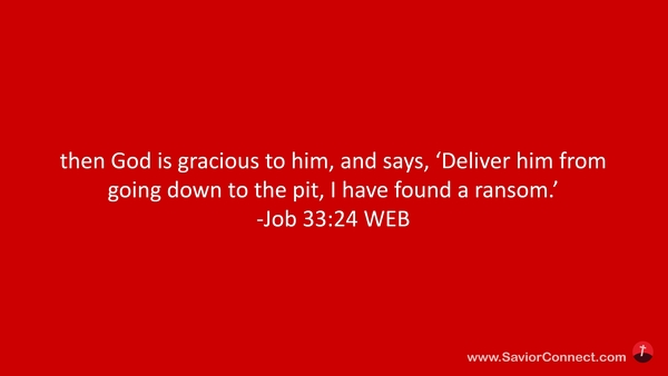 then God is gracious to him, and says, 'Deliver him from going down to the pit, I have found a ransom.’ -Job 33:24 WEB