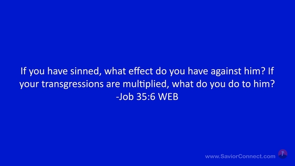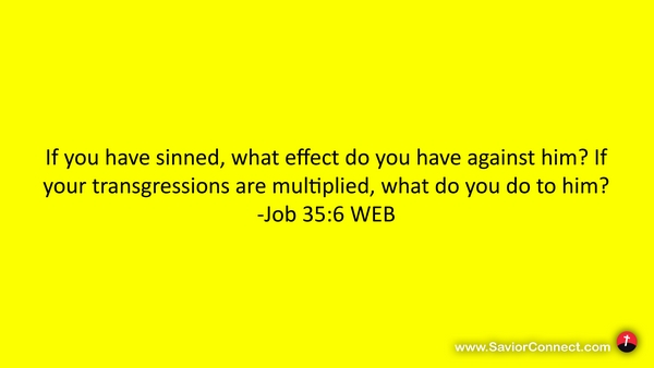 If you have sinned, what effect do you have against him? If your transgressions are multiplied, what do you do to him? -Job 35:6 WEB