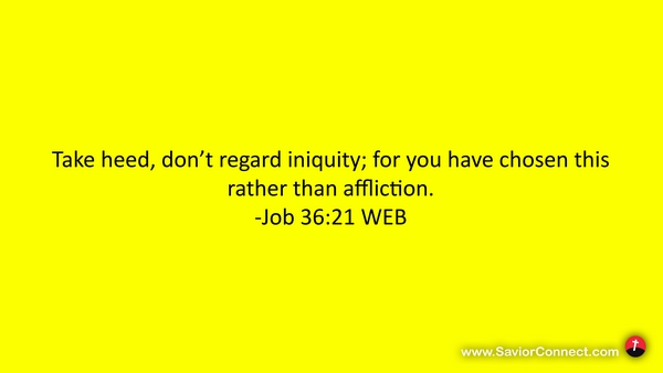 Take heed, don’t regard iniquity; for you have chosen this rather than affliction. -Job 36:21 WEB