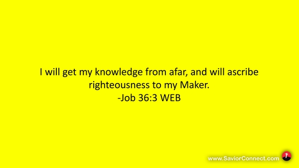 I will get my knowledge from afar, and will ascribe righteousness to my Maker. -Job 36:3 WEB