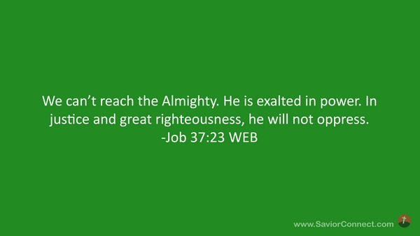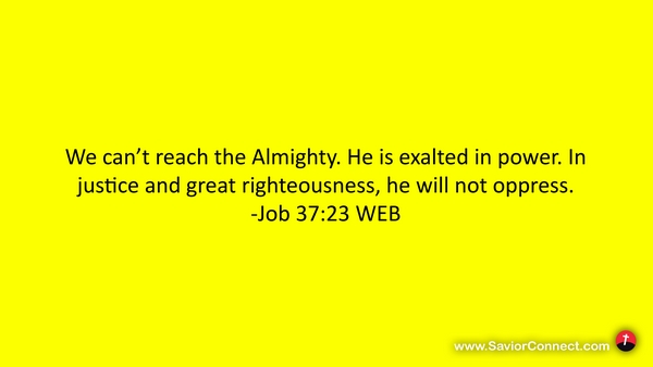 We can’t reach the Almighty. He is exalted in power. In justice and great righteousness, he will not oppress. -Job 37:23 WEB