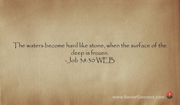 The waters become hard like stone, when the surface of the deep is frozen. -Job 38:30 WEB