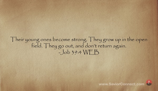 Their young ones become strong. They grow up in the open field. They go out, and don’t return again. -Job 39:4 WEB