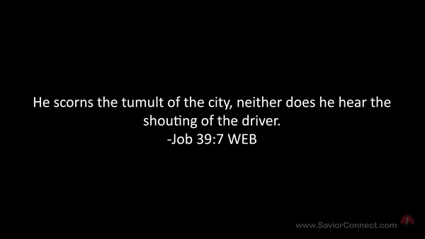 He scorns the tumult of the city, neither does he hear the shouting of the driver. -Job 39:7 WEB