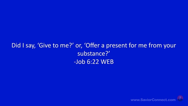 Did I say, 'Give to me?’ or, 'Offer a present for me from your substance?’ -Job 6:22 WEB