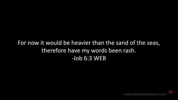 For now it would be heavier than the sand of the seas, therefore have my words been rash. -Job 6:3 WEB