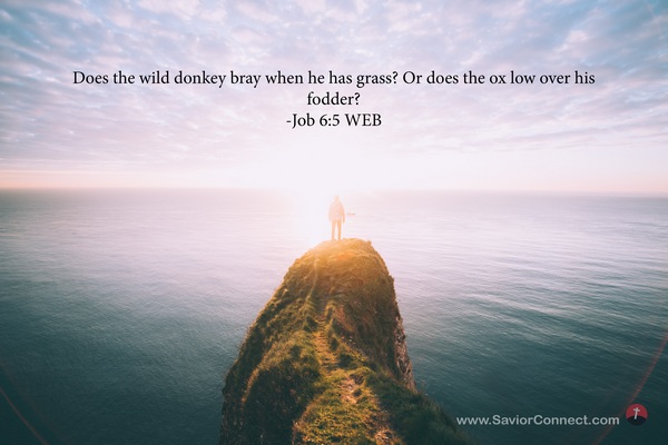 Does the wild donkey bray when he has grass? Or does the ox low over his fodder? -Job 6:5 WEB