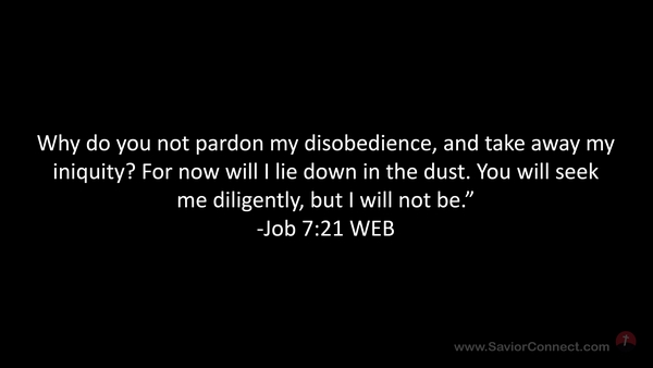 Why do you not pardon my disobedience, and take away my iniquity? For now will I lie down in the dust. You will seek me diligently, but I will not be.” -Job 7:21 WEB