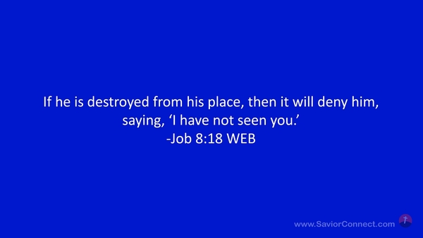 If he is destroyed from his place, then it will deny him, saying, 'I have not seen you.’ -Job 8:18 WEB