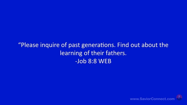 “Please inquire of past generations. Find out about the learning of their fathers. -Job 8:8 WEB