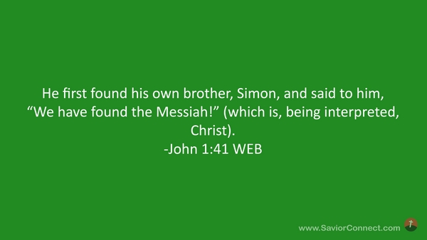 He first found his own brother, Simon, and said to him, “We have found the Messiah!” (which is, being interpreted, Christ). -John 1:41 WEB