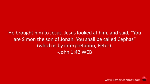 He brought him to Jesus. Jesus looked at him, and said, “You are Simon the son of Jonah. You shall be called Cephas” (which is by interpretation, Peter). -John 1:42 WEB