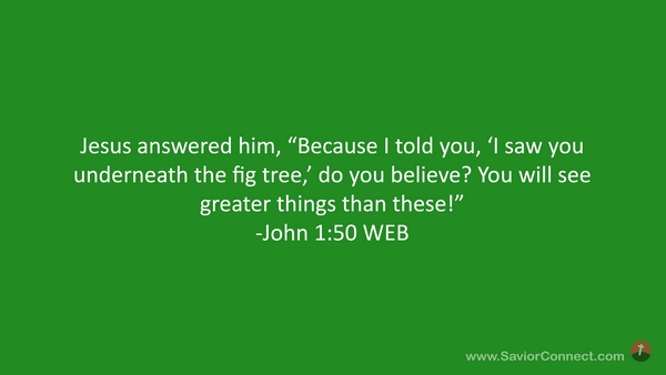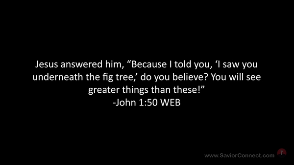 Jesus answered him, “Because I told you, 'I saw you underneath the fig tree,’ do you believe? You will see greater things than these!” -John 1:50 WEB
