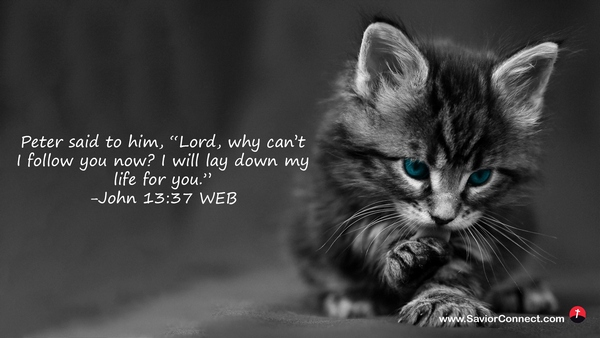 Peter said to him, “Lord, why can’t I follow you now? I will lay down my life for you.” -John 13:37 WEB