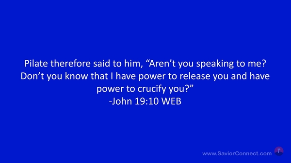 Pilate therefore said to him, “Aren’t you speaking to me? Don’t you know that I have power to release you and have power to crucify you?” -John 19:10 WEB