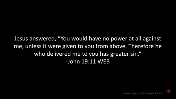 Jesus answered, “You would have no power at all against me, unless it were given to you from above. Therefore he who delivered me to you has greater sin.” -John 19:11 WEB