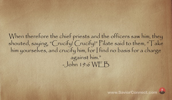 When therefore the chief priests and the officers saw him, they shouted, saying, “Crucify! Crucify!” Pilate said to them, “Take him yourselves, and crucify him, for I find no basis for a charge against him.” -John 19:6 WEB