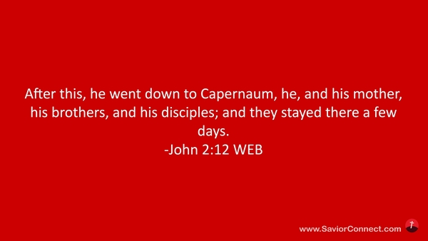 After this, he went down to Capernaum, he, and his mother, his brothers, and his disciples; and they stayed there a few days. -John 2:12 WEB