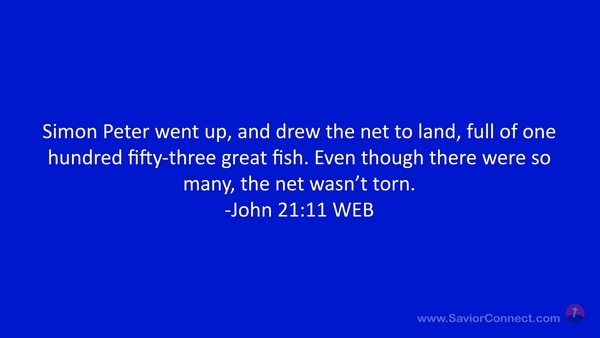 Simon Peter went up, and drew the net to land, full of one hundred fifty-three great fish. Even though there were so many, the net wasn’t torn. -John 21:11 WEB
