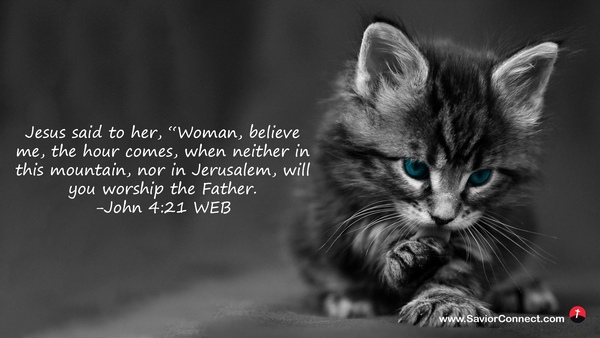 Jesus said to her, “Woman, believe me, the hour comes, when neither in this mountain, nor in Jerusalem, will you worship the Father. -John 4:21 WEB