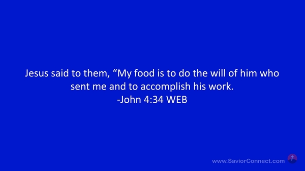 Jesus said to them, “My food is to do the will of him who sent me and to accomplish his work. -John 4:34 WEB