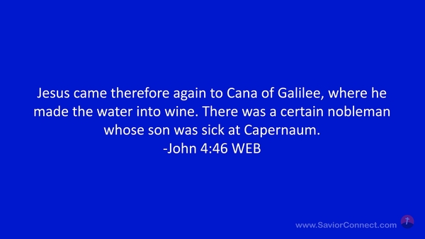 Jesus came therefore again to Cana of Galilee, where he made the water into wine. There was a certain nobleman whose son was sick at Capernaum. -John 4:46 WEB