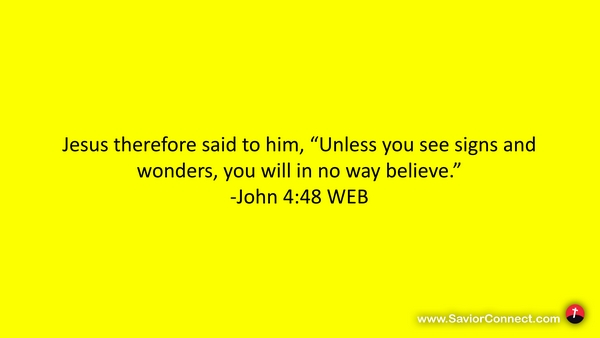 Jesus therefore said to him, “Unless you see signs and wonders, you will in no way believe.” -John 4:48 WEB