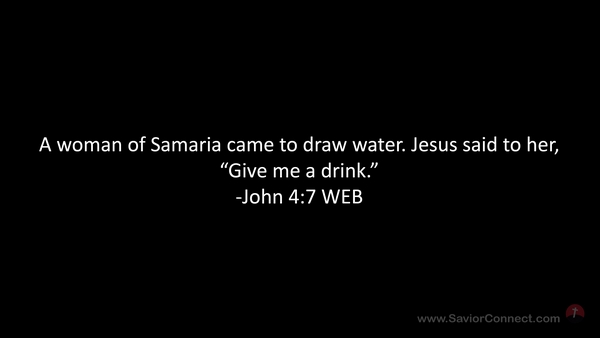 A woman of Samaria came to draw water. Jesus said to her, “Give me a drink.” -John 4:7 WEB
