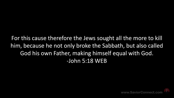 For this cause therefore the Jews sought all the more to kill him, because he not only broke the Sabbath, but also called God his own Father, making himself equal with God. -John 5:18 WEB