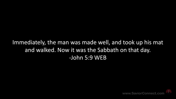 Immediately, the man was made well, and took up his mat and walked. Now it was the Sabbath on that day. -John 5:9 WEB