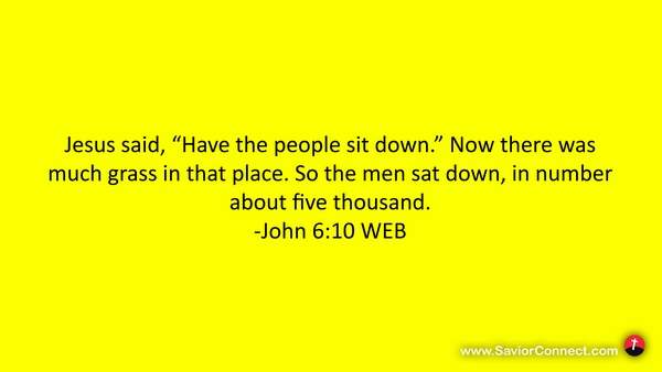 Jesus said, “Have the people sit down.” Now there was much grass in that place. So the men sat down, in number about five thousand. -John 6:10 WEB